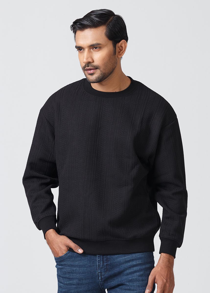 This Black sweatshirt is crafted from 95% polyester and 5% spandex, offering a soft, stretchy, and comfortable fit. Its sleek design provides both flexibility and durability, making it ideal for everyday wear.